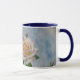Mi obra de arte digital original, que muestra mi fotografía original de dos rosas color amarillo-rosa crema, está en esta taza de taza de bonito floral. La imagen fue procesada con un efecto de fantasía acuarela para una apariencia ilustrada y caprichosa. El interior de la taza y el mango son de tono azul para complementar la obra de arte. Estos son tazas de 11 onzas, el tamaño perfecto para tu café o té hecho en casa - o incluso chocolate caliente! Sería un gran regalo y se pueden poner paquetes de café, bolsos de té o chocolate caliente dentro. Otra idea de regalo es poner una pequeña planta en ella para hacerlo extra especial para tu ser querido.