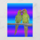 Estos dos loros verdes muy finos que colocamos ante un fondo de neón turquesa, azul y púrpura. Puede agregar su propio texto, si lo desea.