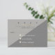 Un sencillo diseño de r.s.v.p. (Répondez S'il Vous Plaît) en dos tonos de gris, con líneas de texto: por favor conteste por (fecha personalizado), nombres de invitados, las opciones: acepta con placer, los invitados asisten y se niega a lamentar