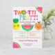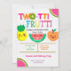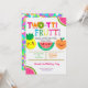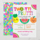 Este diseño presenta frutas personalizados de diferentes colores vivos, confeti colorido y tipografía. ¡Genial para tus hijas en segundo cumpleaños!