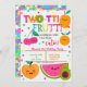 Este diseño presenta frutas personalizados de diferentes colores vivos, confeti colorido y tipografía. ¡Genial para tus hijas en segundo cumpleaños!