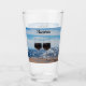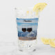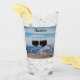 Dos copas de vino tinto contra el fondo de la montaña. Vista de los picos nevados en las montañas...