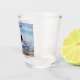 Dos copas de vino tinto contra el fondo de la montaña. Vista de los picos nevados en las montañas