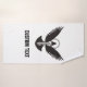 Paloma voladora con un icono de clave simple. Texto personalizado.