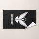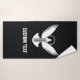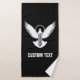 Paloma voladora con un icono de clave simple. Texto personalizado.