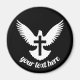Silhouette de palo con alas abiertas y una cruz. Texto personalizado.