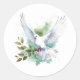 El pegatina redondo se muestra con una huella de arte de la acuarela de la paloma espiritual. Tamaño pequeño mostrado Personalizar este artículo o compra tal cual. Imagen con licencia