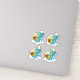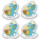 Conjunto de cuatro pegatinas de vinilo cortados con un ilustracion de un lindo dragón azul vigilando un tesoro; motivos de fantasía de personalizado animal para los niños; con plantilla de texto personalizado para el nombre de su hijo o mensaje personalizado