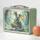 La temática del dragón personalizó la caja de almuerzo del niño. Un capricho dragón, representado en un detallado estilo de ilustracion acuático, se alza sobre una antigua ruina de piedra cubierta de musgo. La luz del sol se filtra a través del denso dosel forestal del bosque, iluminando motes de polvo bailando en el aire. Las escalas del dragón brillan con tonos irrisorios, y sus ojos sostienen un arte de fantasía suave, sabedor y divertido.