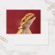 Un dragón barbudo mirando hacia arriba y luciendo feliz y alegre.