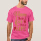 El color es muy bonito al natural, como la foto. El tejido es suave y de buena calidad. Sin defectos en el tintado, ni hilos sueltos o descosidos. Bien la impresión. Los bordes de las letras y el dibujo son nítidos, y el color contrasta muy bien con el de la camiseta.