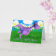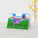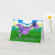 Dragón morado bailando en la tarjeta de cumpleaños del jardín