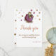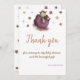 Tarjeta de agradecimiento linda con un dragón bebé en un huevo morado. Esta tarjeta es perfecta para enviar después de la celebración de la fiesta de cumpleaños para bebé a sus invitados. Encontrará productos coordinados en mi tienda. Arte por Patricia Alvarez