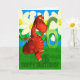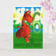 Dragón rojo bailando en la tarjeta de cumpleaños del jardín