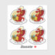 Conjunto de cuatro pegatinas de vinilo cortados con el ilustracion de un lindo dragón rojo vigilando un tesoro; motivos de fantasía de personalizado animal para los niños; con plantilla de texto personalizado para el nombre de su hijo o mensaje personalizado