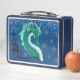 Retrato de perfil de dragones azul, verde y verde azulado con nieve cayendo por todas partes. Rosa tribal negro.