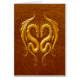 Dos dragones tribales amarillos de oro se hacen frente en este diseño simétrico agresivo. Las serpientes coas alas tienen el aspecto del lanzamiento fuera del hierro sólido que crea una mirada imponente 3D. Una sombra cae sobre el fondo marrón rico que hace los dragones aparece flotar apenas sobre la superficie de esta tarjeta.