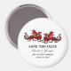 Perfecto para un sofisticado boda con temas de juego de mesa de fantasía es este elegante y exclusivo Magnate Elegant Dragons Save the Date Magnet con un par de dragones rojos de colores vivos. Fácil de personalizar, simplemente agregue los detalles de su boda en los campos de texto proporcionados. Haga clic en "Personalizar" para encontrar más opciones de personalización.