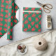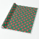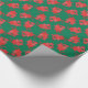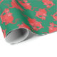 Un rollo de divertido Giftwrap, con un patrón de lindos dragones rojos sobre un fondo verde oscuro, de un ilustracion acuarela pintado a mano por Judy Adamson.