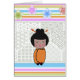 Dulce muñeca kokeshi con un patrón de libélulas en su kimono.