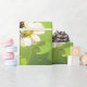 Una libélula sobrevuela una flor blanca. Este diseño parece realmente efectivo en este papel de ajuste