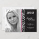 Una damáscara sencilla y elegante hace de esto una tarjeta de invitación de graduación llamativa. Puede cambiar fácilmente la franja coloreada haciendo clic en el personalizar y cambiando el color del fondo.