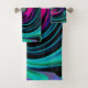 Esta pintura digital de aceite original de My Rubio Garden presenta un diseño retro dramático negro, turquesa y magenta con acentos Verde azulados azul, negro, verde oliva, púrpura y magenta. El resultado es un diseño colorido, ruidoso, abstracto y retro que te encantará.