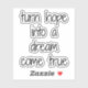 Dream Come True Personalizado Cut Vinyl Pegatina