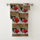 Tres símbolos del corazón, brillando en negro y dorado, textura cristalizada, con un rojo gliztzy, desplegado contra paneles de madera, en oro y gris quemados, que brilla con transparencia.