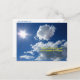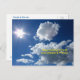 Una postal con una fotografía de nubes esponjosas y una estrella del sol o rayos de sol. Fotografiado en el suroeste de Florida. Esta fotografía de nubes y sol, está protegida por derechos de autor y registrada por mí, Christina Spiegeland. Copyright 2016.