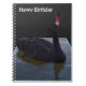 La imagen es un cisne negro nadando en un estanque de dimensiones de agua. el mensaje de cumpleaños está incluido.