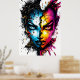 Explora la intensidad cruda del contraste y la emoción con esta impresionante obra de arte de una figura de doble rostro, dividida entre tonos azules helados y rojos ardientes. Este diseño inspirado en la tinta salpicada y los cómics encarna la tensión entre opuestos: frío y calor, luz y sombra, calma y furia. Una composición visualmente explosiva con texturas detalladas y dinámicas de color audaces hace que esta pieza sea una obra de arte declarativa, perfecta para los amantes de la fantasía oscura expresiva y la estética abstracta de los cómics.