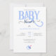 Invitación a la DUCHA DE NIÑO azul adorable con tipografía azul BABY y un pequeño pacificador azul