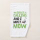 Funny diseño de cortadora de césped que dice: La hierba está llamando y yo debo mascar.