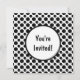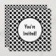 Una plantilla de invitación a una novia o a una ducha de bebé personalizados con simples puntos negros de polka grandes y pequeños sobre un fondo blanco. Haga clic en Personalizar para cambiar fuentes, colores de fondo y más, incluso para guardar el diseño para más adelante.