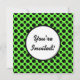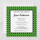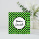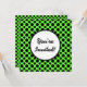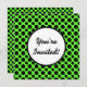 Una plantilla de invitación a una novia o a una ducha de bebé personalizados con simples puntos negros de polka grandes y pequeños sobre un fondo verde neón. Haga clic en Personalizar para cambiar fuentes, colores de fondo y más, incluso para guardar el diseño para más adelante.