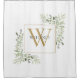 Elegante color de agua personalizado con eucalipto floral verde cortina de ducha monograma con un primer monograma dorado. Diseñado por Thisisnotme©