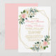 Color de agua Rosa Rubor Blanco y dorado Floral Ducha de novia Tarjeta de invitación a marco geométrico - Texto rosa y dorado - Atrás rosado