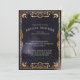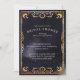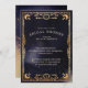 Hermoso diseño de invitación a la ducha de novias estilo tarjeta de tarot holístico y espiritual. El diseño presenta nuestro propio diseño holístico del sol y de la tarjeta de lona en un falso purpurina de oro. El diseño se ha diseñado con detalles complejos y decorativos. El fondo está decorado con un audaz diseño azul marino y dorado con dos estrellas de imitación de oro. Personalizar con su monograma, nombre de la novia, detalles del evento y hora. El reverso presenta un fondo atrevido de tinta azul marino con falsos acentos dorados y un elemento de diseño de luna dorada.