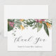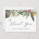 Tarjeta de agradecimiento con flores tropicales y vegetación. Personaliza con tu información o haz clic en "Haz clic para personalizar más" para editar estilos de letra, tamaño y colores.
