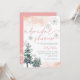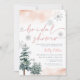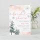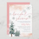 Invitación a una ducha de novia en invierno. Rosa y rubia con pinos y copos de nieve.