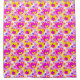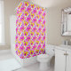 Un botón atrevido y un cortina de ducha con motivos de oso de peluche. Diseño de chicas de patrones de repetición rosa, amarillo, blanco y violeta. Ideal para un baño o baño para niños, arte gráfico original y diseño de Sarah Trett.