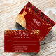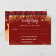 Delantera: fondo rojo decorado con purpurinas de oro falso, chispas. Personaliza y agrega tu nombre y fechas. Atrás: un vestido dorado y rosas rojas.