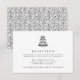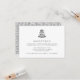 ¡Sigue la fiesta! Las tarjetas de inserción para la recepción de la boda en elegante blanco y negro presentan una ilustración de un pastel de bodas escalonado en la parte superior, con la hora, el lugar y detalles adicionales de la recepción debajo. El reverso de las tarjetas tiene un patrón de enredadera y brotes botánicos en blanco y negro a juego.