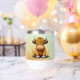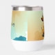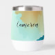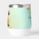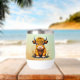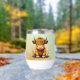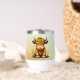 Adorable y lindo bebé vaca de tierras altas sentada en hierba y flores. Beber animal lindo. Sólo hay que añadir un nombre al tumbler en el área de personalización. Un lindo tumbler para añadir a tu colección. Azul, verde y marrón.