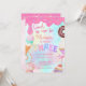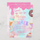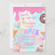En esta suculenta invitación se sirven deliciosos donuts, helados y postres con helados de color pastel de color agua y muchos guijarros de color arcoiris.