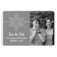 Anuncie su boda temática de vacaciones o invierno con esta foto de copo de nieve dulce Salve el imán de la fecha premium. Con un delicado y elegante copo de nieve blanco y una delgada franja sobre un sólido fondo gris claro, este divertido diseño es fácil de personalizar. Simplemente agregue sus propios detalles de fotos y bodas en los campos de texto proporcionados o haga clic en "Personalizar" para encontrar más opciones de personalización.