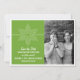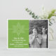 Anuncie su boda temática de vacaciones o invierno con esta foto de Sweet Snowflake Save the Date Annountium. Con un delicado y elegante copo de nieve blanco y una delgada franja sobre un sólido fondo verde, este divertido diseño es fácil de personalizar. Simplemente agregue sus propios detalles de fotos y bodas en los campos de texto proporcionados o haga clic en "Personalizar" para encontrar más opciones de personalización.