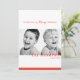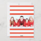 Tarjeta de plantilla de dos fotos de Navidad. Rayas brillantes rojas y blancas agregue su propia foto en la parte delantera y trasera de la tarjeta y personalice con el nombre de su familia.