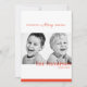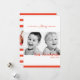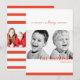Tarjeta de plantilla de dos fotos de Navidad. Las brillantes franjas rojas y blancas agregan tu propia foto en la parte delantera y trasera de la tarjeta y personalizan con el nombre de tu familia.